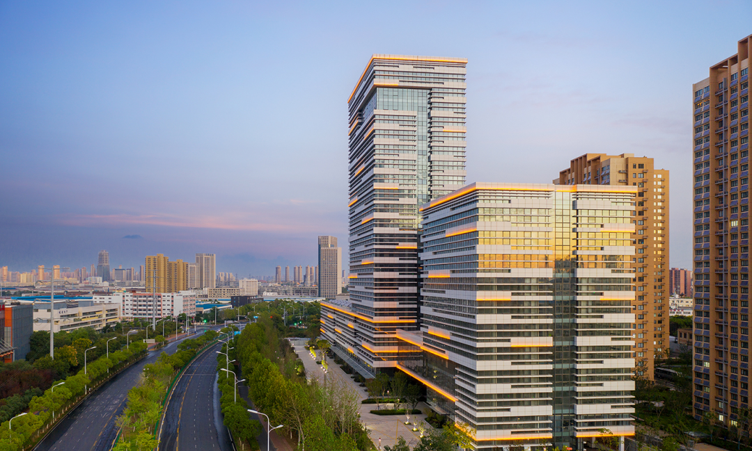 建筑主樓中部玻璃在底部擴(kuò)大、上揚(yáng),自然形成入口雨棚,形成涓涓細(xì)流匯聚之勢(shì),寓意“海納百川”。造型理性又不失豐富與活躍。建筑立面以橫向線條為造型要素,局部起伏,流暢動(dòng)感,形似涌動(dòng)起伏的海浪、樹立企業(yè)新的發(fā)展信念,也必將成為區(qū)域的地標(biāo)建筑,為合肥的城市建設(shè)添上濃墨重彩的一筆。