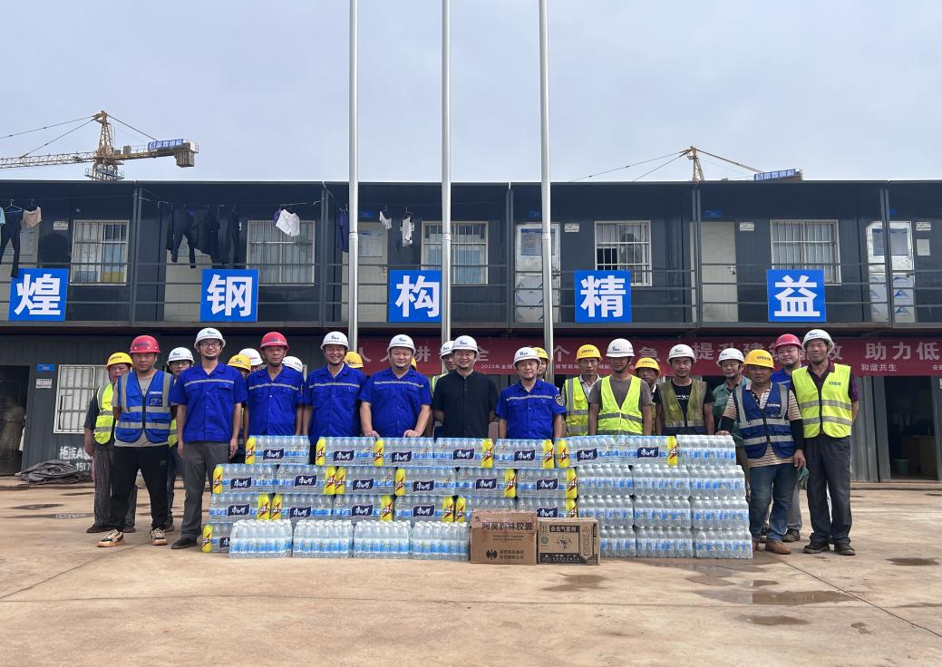 儀式結(jié)束后,汪浩波代表公司向工地一線工人表示慰問,并送去涼爽飲料和夏日大禮包,包含十滴水、藿香正氣液、仁丹等防暑降溫物品,同時(shí)宣揚(yáng)防暑降溫常識(shí),增加工人的自我防暑意識(shí),努力創(chuàng)建文明工地、健康工地。