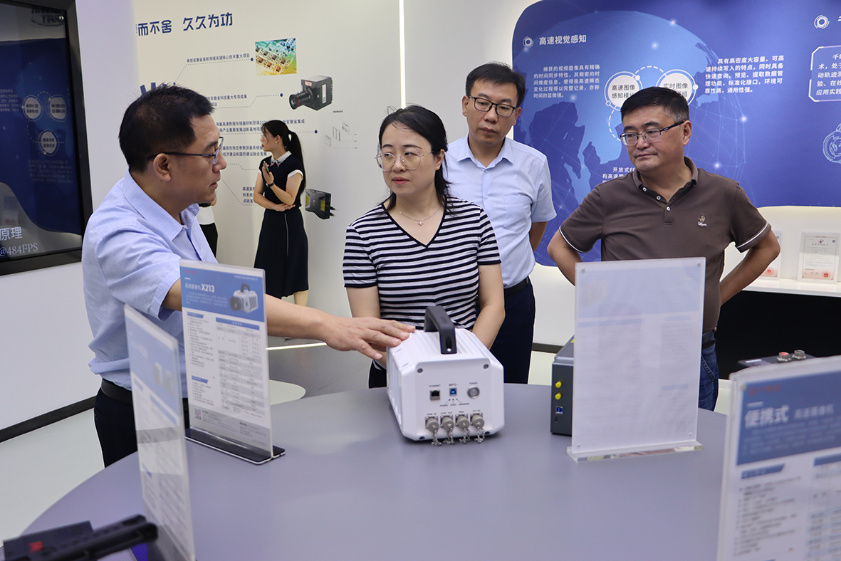 陳娟娟一行參觀了富煌新視覺展示中心,企業(yè)負(fù)責(zé)人詳細(xì)介紹了新視覺各產(chǎn)業(yè)發(fā)展、技術(shù)應(yīng)用領(lǐng)域和自主創(chuàng)新技術(shù)成果轉(zhuǎn)化的情況,并著重對芯片制造等方面的問題進行了匯報。