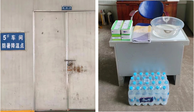 在所有車間內(nèi)設(shè)置“防暑降溫點”,配備防暑降溫藥品和用品,以便員工在高溫下遇到不適時得到及時處理。針對特殊崗位員工發(fā)放防暑降溫禮盒以示關(guān)懷。