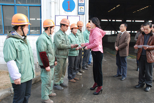 為履行富煌集團(tuán)董事長(zhǎng)楊俊斌“走進(jìn)富煌就不讓你過苦日子”的承諾,富煌集團(tuán)“愛心救助基金會(huì)”會(huì)長(zhǎng)周伊凡率領(lǐng)集團(tuán)工會(huì)負(fù)責(zé)人于2013年1月31日深入各分子公司和生產(chǎn)車間,分別為55位困難員工送去了慰問金,并向他們致以春節(jié)問候。周伊凡勉勵(lì)大家,要堅(jiān)定戰(zhàn)勝困難的信心,認(rèn)真努力工作,企業(yè)會(huì)一如既往的關(guān)心員工的疾苦,幫助困難員工,讓困難員工與大家一道過上幸福美滿的生活。