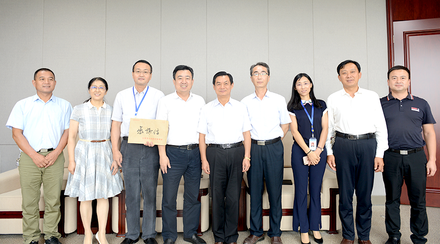 8月17日,安徽省政府參事室黨組書記、主任白和平攜省政府參事室辦公室相關(guān)人員、霍邱縣彭塔鄉(xiāng)西隱賢村黨支部書記趙以松親臨富煌集團(tuán),送來一封感謝信。感謝富煌集團(tuán)對西隱賢村的幫扶和關(guān)懷,對省政府參事室扶貧工作的大力支持。富煌集團(tuán)董事長楊俊斌熱情接待了白和平一行。
